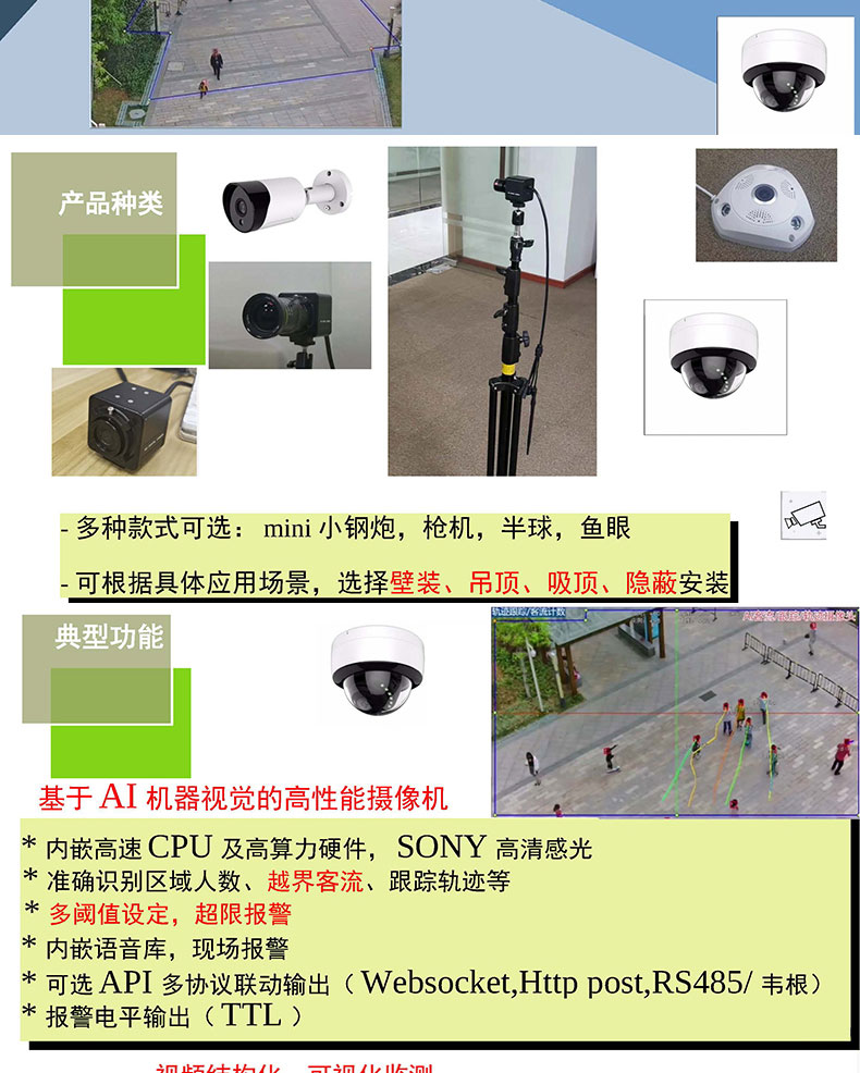 景區(qū)商場超市客運智能監(jiān)控客流人數(shù)統(tǒng)計軌跡跟蹤AI攝像機支持定制開發(fā)